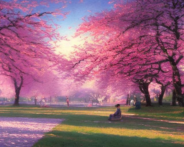 Easy Diffusion에서는 생성된 이미지위에 마우스를 올리면 나타나는 "Make similar image" 단추를 누르면 쉽게 생성할 수 있다. 왼쪽은 프롬프트 "cherry blossom in a empty park, by Thomas Kinkade"로 생성한 이미지중 하나이며, 오른쪽은 이 기능으로 만들어 본 비슷한 분위기의 그림이다.
