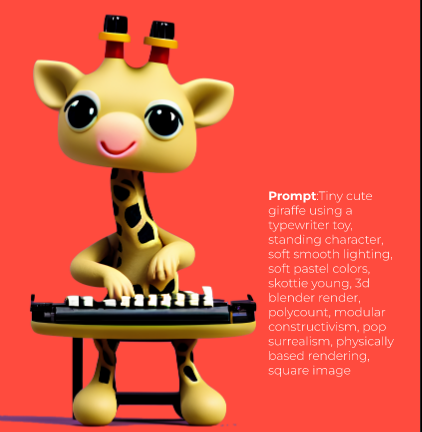 Prompt:Tiny cute giraffe using a typewriter toy, standing character, soft smooth lighting, soft pastel colors, skottie young, 3d blender render, polycount, modular constructivism, pop surrealism, physically based rendering, square image |