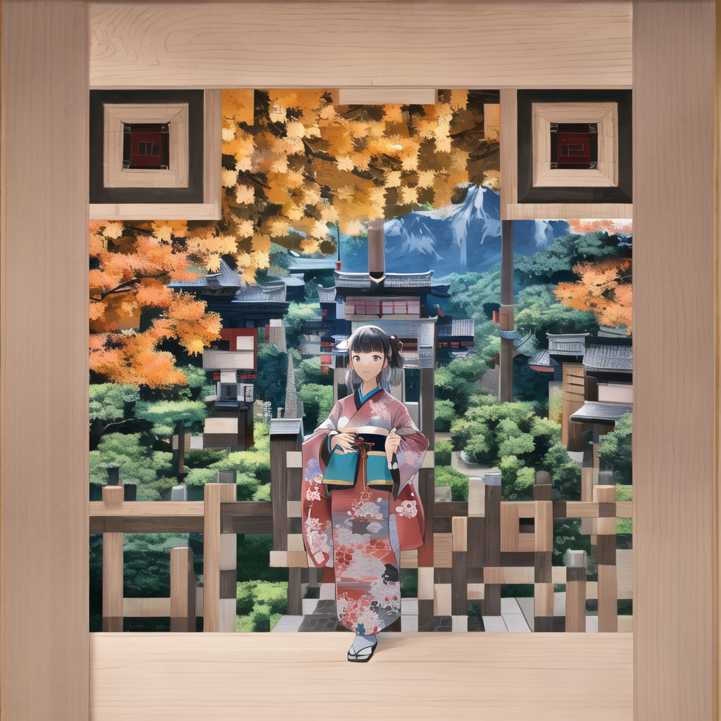 프롬프트: Japanese painting, mountains, 1girl