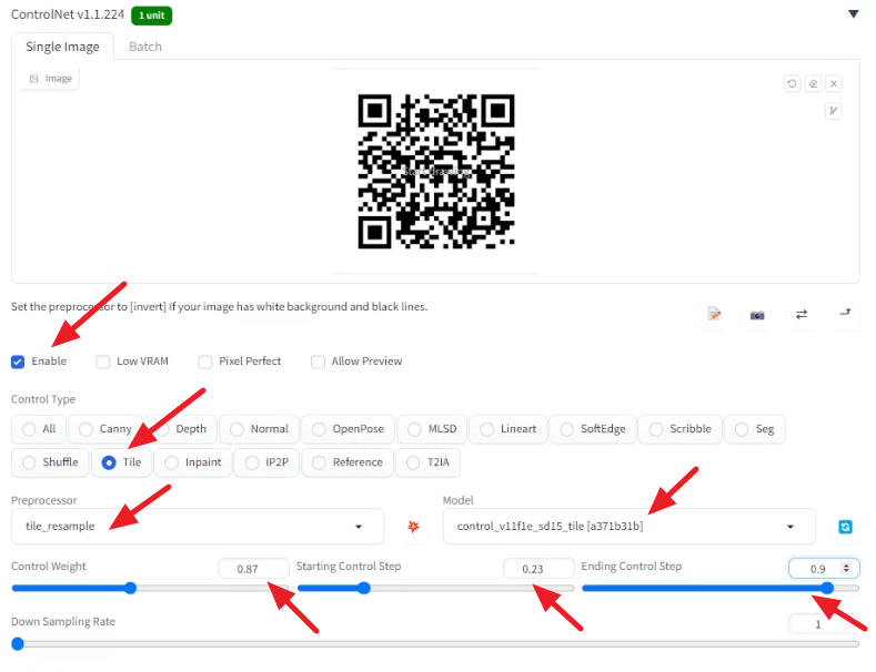 - 방법2: Tile resample 모델을 사용해 QR 코드를 장식하기