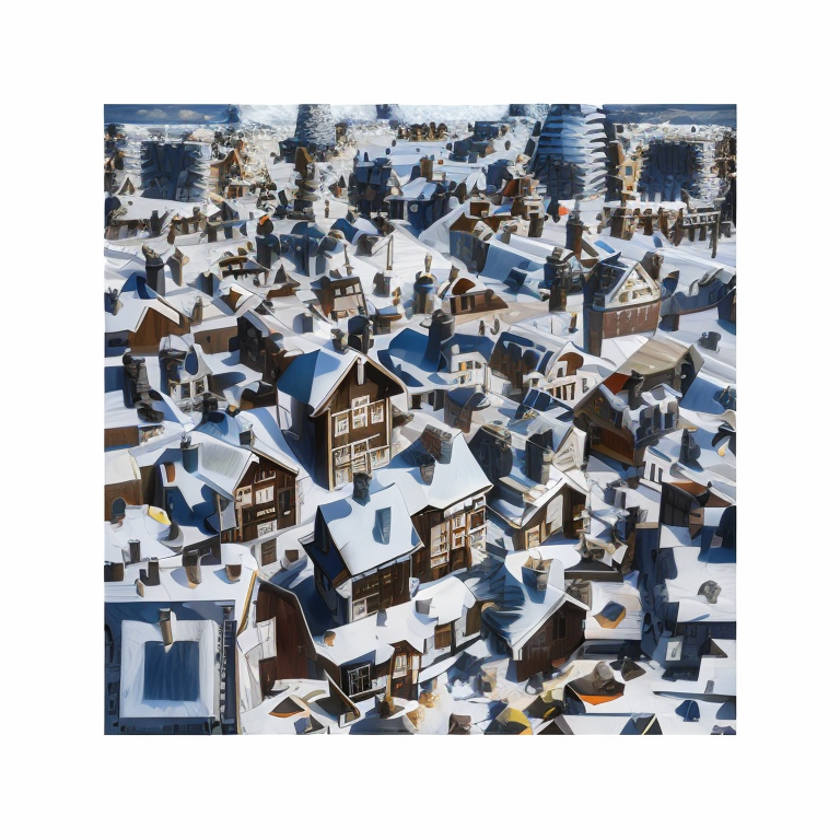 프롬프트: a cubism painting of a town with a lot of houses in the snow with a sky background, Andreas Rocha, matte painting concept art, a detailed matte painting