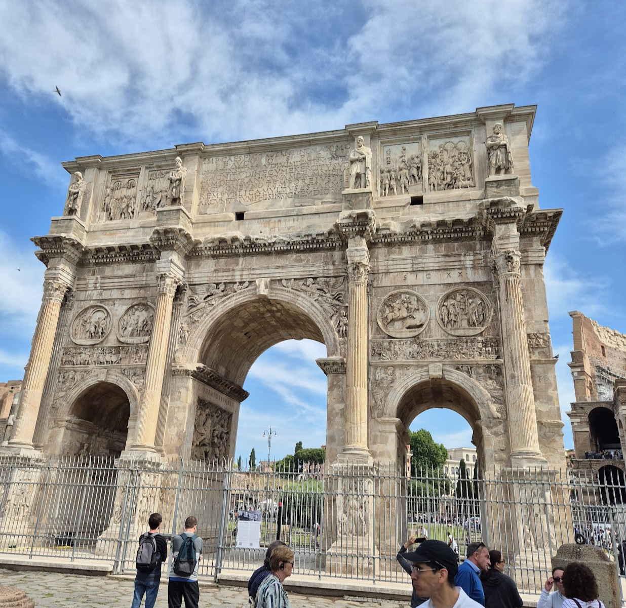 콜로세움 쪽으로 걸어가니 수도교 유적이 보이네요. 오른쪽의 문은 콜로세움 바로 곁에 있는 콘스탄티누스 대제의 개선문입니다.