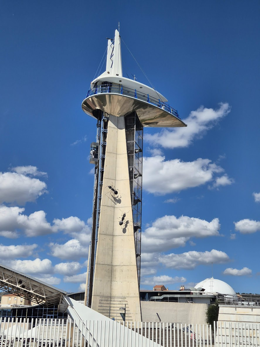 아래는 길을 가다가 만난 전망탑입니다. 개미가 두 마리 붙어있고, 좌측엔 엘리베이터가 보입니다. 이 정도 높이면 전망대에서 그라나다 성이 보일거라고 생각해 들어가보기로 했습니다. 그런데 이 전망탑이 독립된 건물이 아니고 Parque de las Ciencias라는 과학 박물관 부속 건물이더군요. 그래서 그냥 포기했습니다.