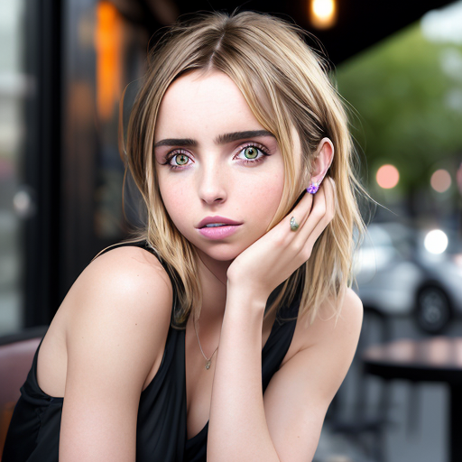 프롬프트: Emma Watson, Tara Reid, Ana de Armas, photo of young woman, highlight hair, sitting outside restaurant, wearing dress, rim lighting, studio lighting, looking at the camera, dslr, ultra quality, sharp focus, tack sharp, dof, film grain, Fujifilm XT3, crystal clear, 8K UHD, highly detailed glossy eyes, high detailed skin, skin pores