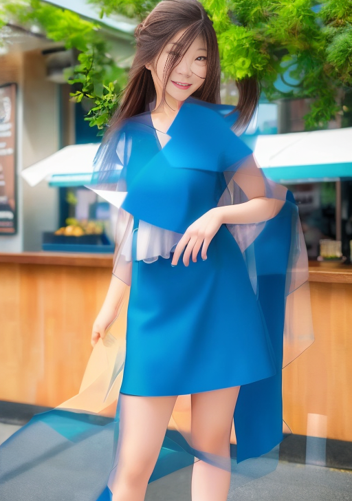 프롬프트 : knee shot, beatiful asian woman, a young female, highlights in hair, standing outside restaurant, smile, blue eyes, wearing a dress, side light, masterpiece, HDR, UHD, photorealistic