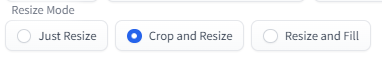 Resize 모드는 입력된 기준 이미지와 생성될 이미지의 크기 비율이 맞지 않을 때 어떤 식으로 처리할 지를 지정하는 것입니다. (입력된 이미지와 생성할 이미지의 비율이 동일하다면 신경쓸 필요 없습니다.)여기에 있는 메뉴는 img2img의 Resize 모드와 완전히 동일합니다.