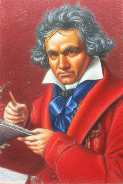 | Color pencil drawing of Beethoven, Canny | drawing of Beethoven, by Vincent van Gogh, depth_leres |