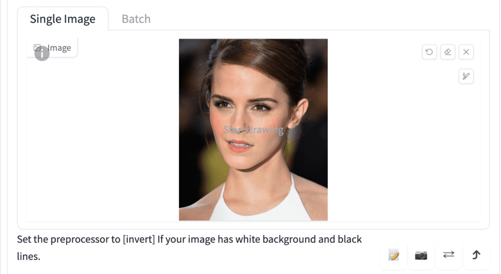 Allow Preview : 사진을 올리는 부분 오른쪽에 현재 선택한 전처리기의 결과를 미리 볼 수 있습니다. 예전에는 다 처리된 후에 생성된 이미지와 함께 나타났는데, 이제는 미리 확인할 수 있게 된겁니다. 전처리기를 돌린 결과는 Preprocessor와 Model 사이에 있는 💥버튼을 누르면 볼 수 있습니다.