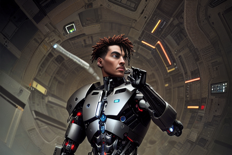 텍스트 프롬프트에 "turn him into a cyborg"라고 입력하여 실행시키면 아래와 같이 생성됩니다.