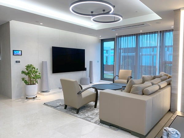 이 모델도 Shuffle 모델과 같이 형태는 사용하지 않고 색감만 사용하므로, 완전히 다른 이미지를 생성할 수 있습니다. 예를 들어 프롬프트를 "A modern living room"라고 입력하면 아래와 같은 이미지가 생성됩니다. 대략적으로 색감이 비슷함을 알 수 있습니다.