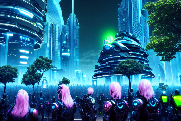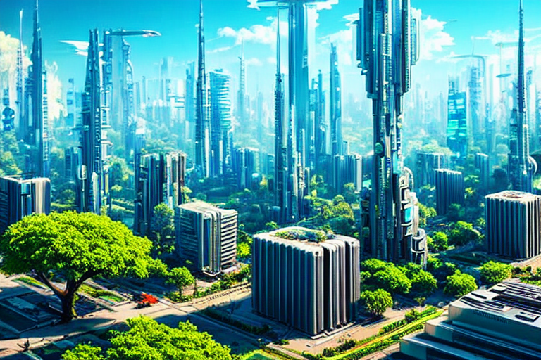 아래는 Ofade20k 전처리기를 적용한 결과입니다. 프롬프트는 "Futuristic city, tree, buildings, cyberpunk"입니다.