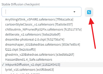 다운로드를 받은 후, checkpoint 드롭박스 옆에 있는 새로 불러오기(reload) 버튼을 눌러주면 이 모델이 나타나게 됩니다.