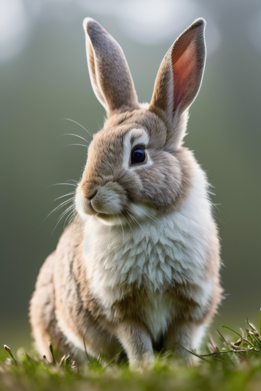 프롬프트: close up photo of a rabbit, forest, haze, halation, bloom, dramatic atmosphere, centred, rule of thirds, 200mm 1.4f macro shot
