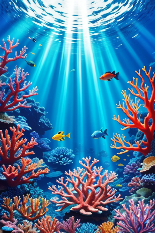 프롬프트: underwater world, colorful fish, bright corals, bubbles, rays of light, intricately detailed, natural bright sunlight, masterpiece, high contrast, hard shadows,<lora:add_detail:0.5>