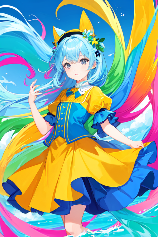 프롬프트: 1girl,solo,floating colorful water, looking at viewer, (flat color:1.1),(colorful:1.3),(masterpiece:1.2), best quality, original, extremely detailed wallpaper