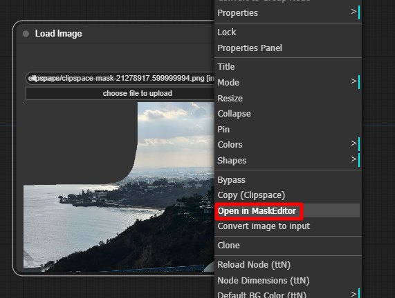 아... 그리고 워크플로 중 [Load Image]노드에서 마스크를 만드는 방법이 있습니다. 아래처럼 그림을 우클릭한 뒤, [Open in MaskEditor]를 선택해주면 됩니다.