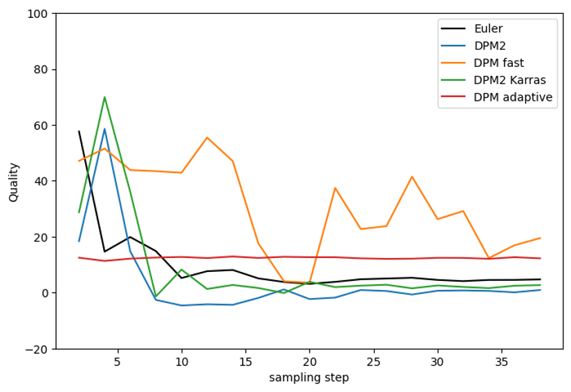 DPM2 샘플러 계열은 Euler 샘플러보다 약간 성능이 좋지 않습니다.