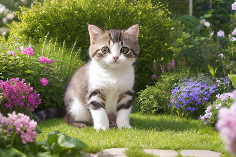 프롬프트: a cute kitty, in a garden, (extremely detailed CG unity 8k wallpaper)