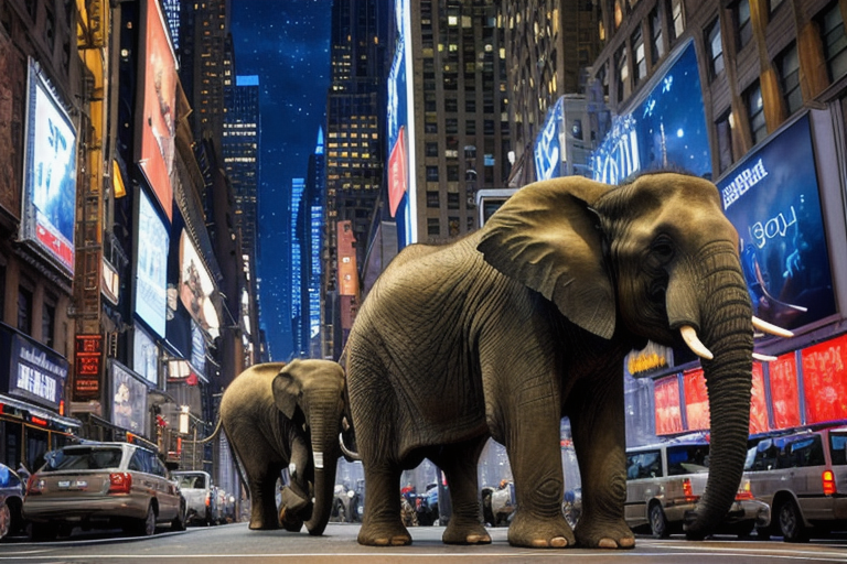 프롬프트: National Geographic Wildlife photo of the year, elephant trunk pointing up in new york city, night, dark studio, depth of field, trunk pointing up