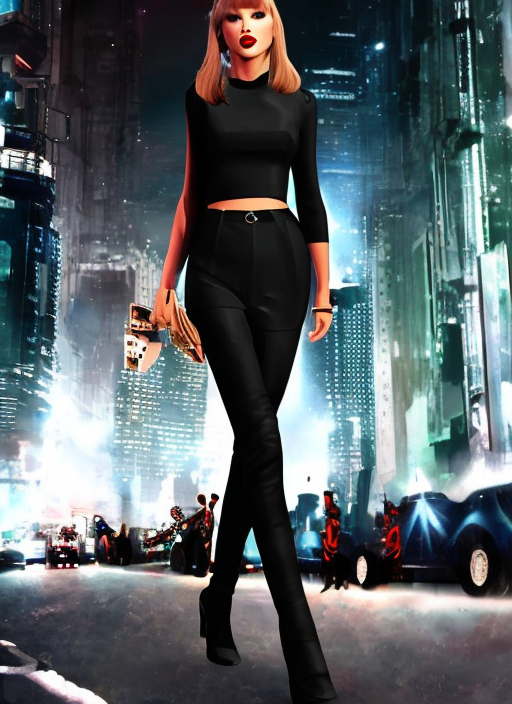 프롬프트 : full body [a woman : Taylor Swift : 0.6] in future high tech dystopian city