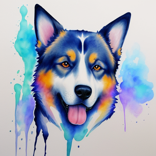 그러면 아래와 이 Marc Allante 스타일의 멍뭉이 이미지가 생성됩니다. (그런데, 구글에서 나오는 Marc Allante의 느낌... 물감이 흐르거나 튀는 느낌은 좀 덜하네요. 계속 생성하면 하나쯤 걸릴 수 있을려나...)