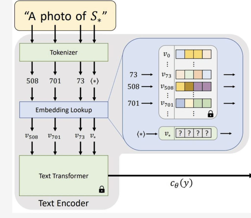 각각의 토큰은 고유한 임베딩 벡터로 변환디어 이미지 생성에 사용됩니다.