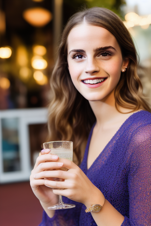 프롬프트 : photo of young woman, [woman:Emma Watson:0.5], highlight hair, sitting outside restaurant, wearing dress, rim lighting, studio lighting, looking at the camera, dslr, sharp focus, tack sharp, dof, film grain, Fujifilm XT3, crystal clear, 8K, UHD, highly detailed glossy eyes, high detailed skin, skin pores