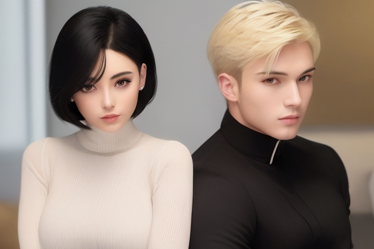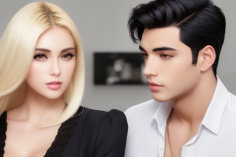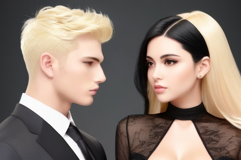 이번엔 좀 더 구체적으로 적어 보겠습니다. 남자는 검은색머리, 여자는 블론드 머리입니다.