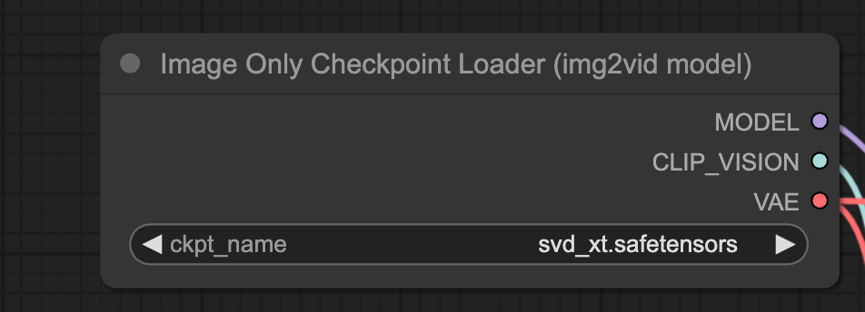 SVD XT 모델을 다운로드 받아서 ComfyUI\models\checkpoints 폴더에 넣어줍니다(AUTOMATIC1111과 모델을 공유할 경우 여기를 읽어보세요). 다운로드가 끝나면 ComfyUI 화면을 새로 고침하고 [Image Only Checkpoint Loader] 노드에서 svd_xt.safetensors 를 선택합니다.