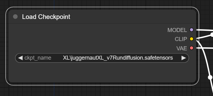 이 워크플로는 JuggernautXL 모델을 사용합니다. 없다면 여기에서 다운로드 받아서 ComfyUI\models\checkpoints 폴더에 넣어줍니다(AUTOMATIC1111과 모델을 공유할 경우 여기를 읽어보세요). 마찬가지로 화면을 새로고침(F5)한뒤 [Load Checkpoint] 노드에서 SDXL 모델을 선택합니다.