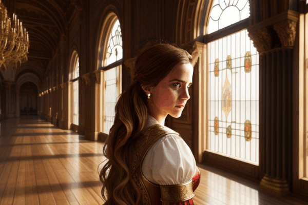 프롬프트: [emma watson: amber heard: 0.5], (long hair:0.5), headLeaf, wearing stola, vast roman palace, large window, medieval renaissance palace, ((large room)), 4k, arstation, intricate, elegant, highly detailed
