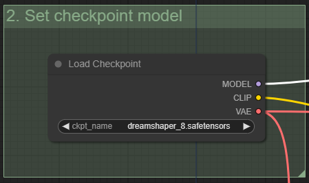 SD1.5 모델 중 원하는 모델을 선택합니다. 이 글에서는 Dreamshaper 8 모델을 사용합니다. 모델 파일을 다운로드 받고 ComfyUI\modes\checkpoints 폴더에 넣어주시면 됩니다(AUTOMATIC1111과 모델을 공유하실 경우엔 여기를 보세요).