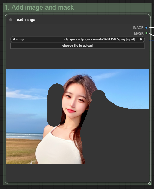 [Load Image] 노드에 이미지를 불러옵니다. [choose file to upload] 버튼을 클릭해서 원하는 이미지를 선택하거나, 그냥 원하는 이미지를 여기에 Drag&Drop해도 됩니다.