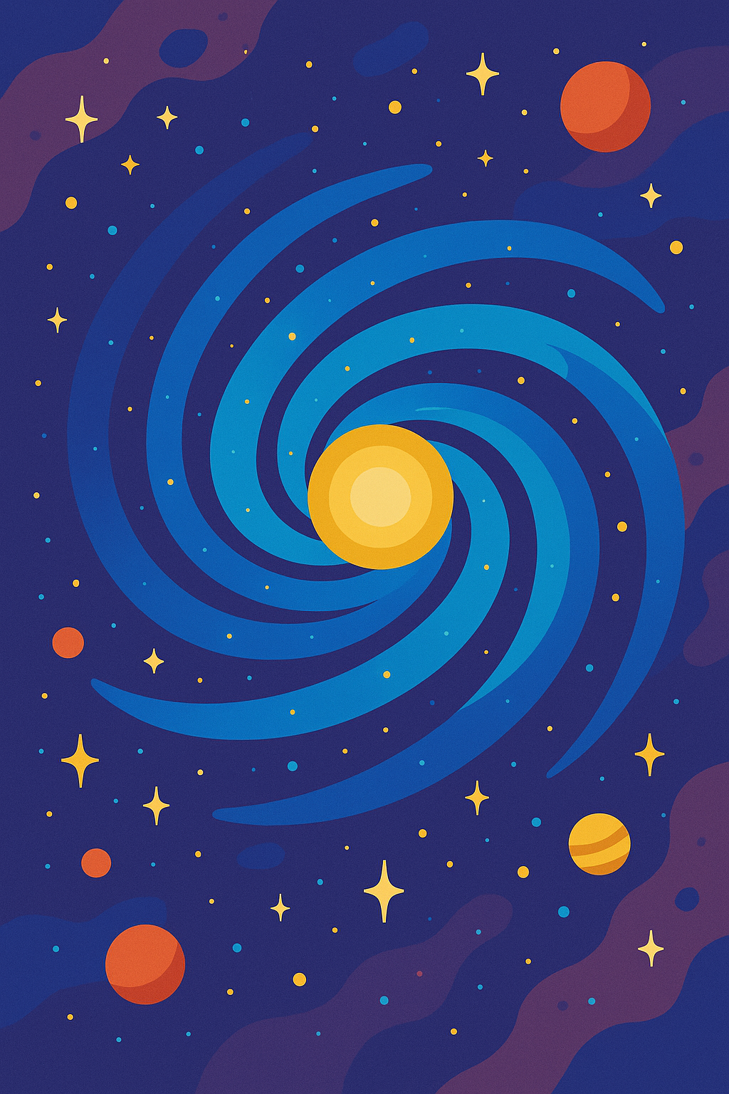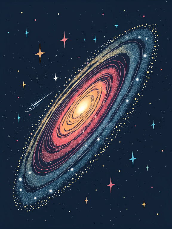 | a flat vector illustration of the galaxy, in the style of Corporate Memphis | |||