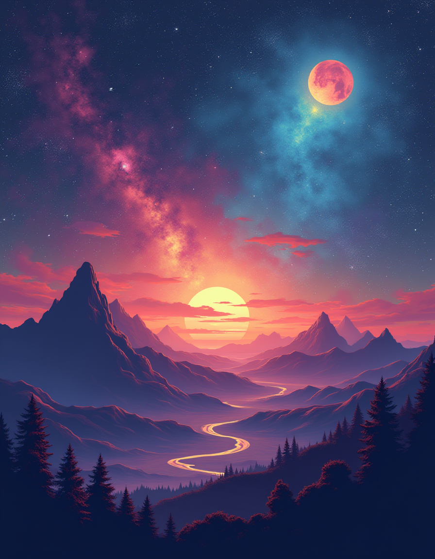 | a flat vector illustration of the galaxy with dreamy colors | |||