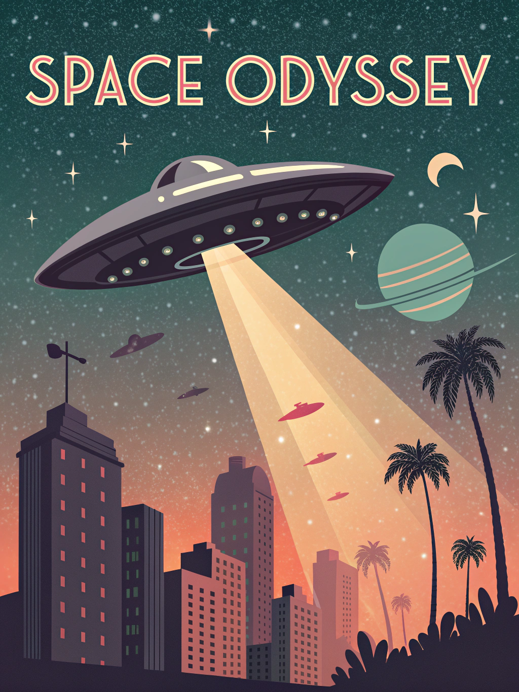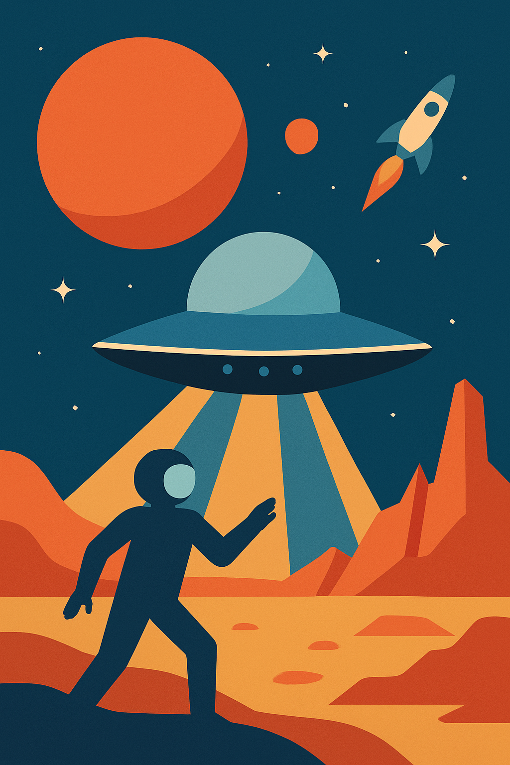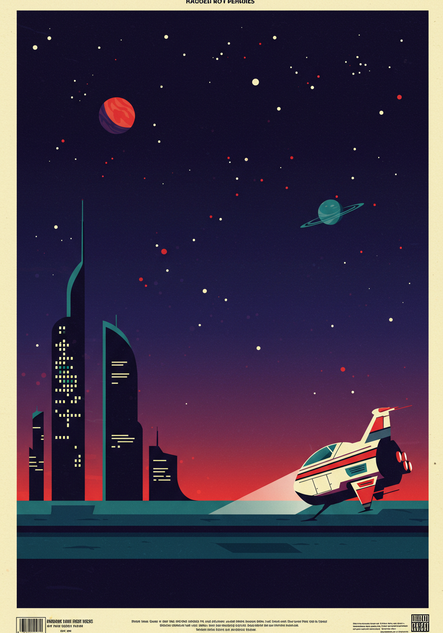 | a retro flat vector illustrative sci-fi movie poster | |||