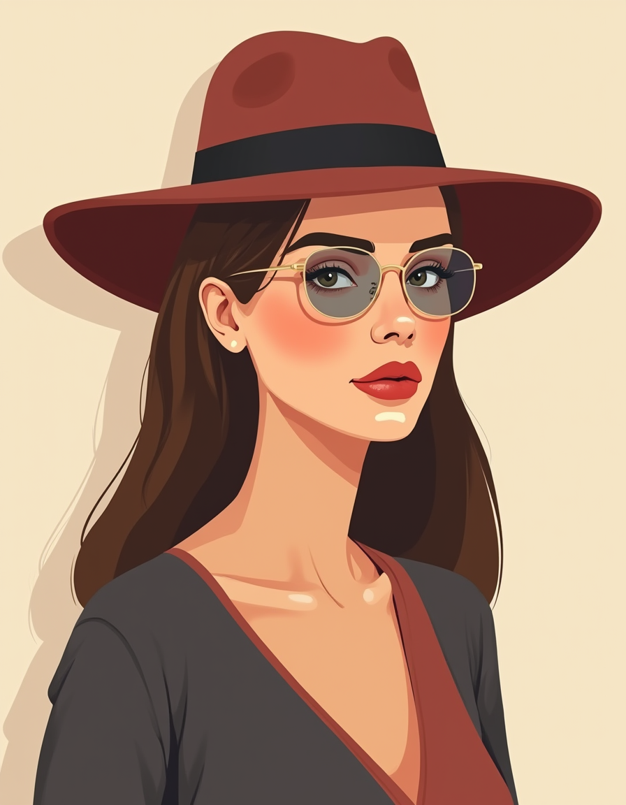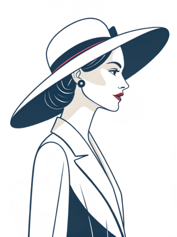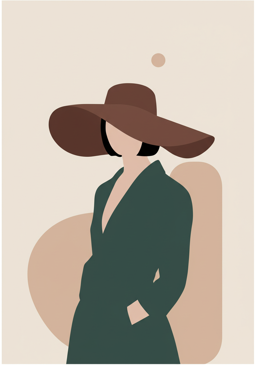 | a minimalistic flat vector illustration of a fashionable woman wearing a hat | |||