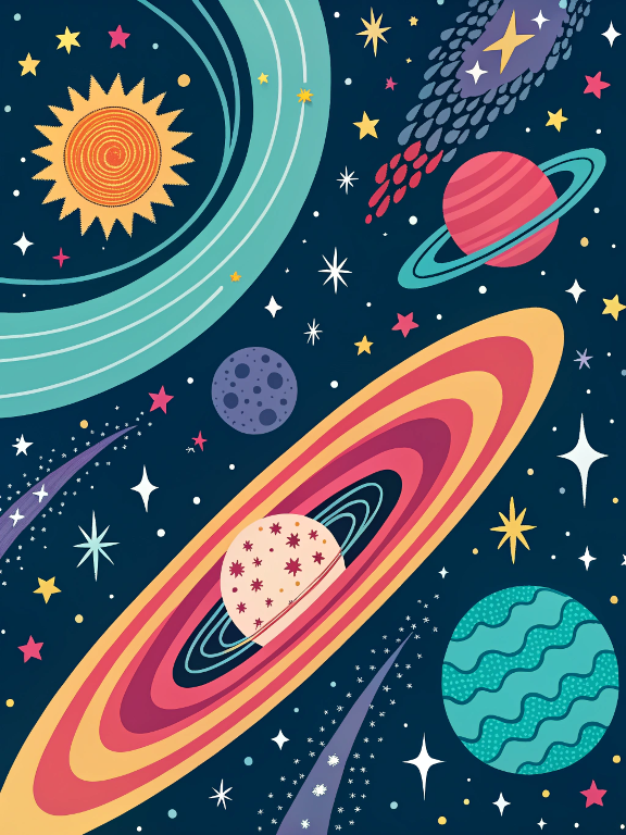 | a flat vector illustration of the galaxy with colors that pop | |||