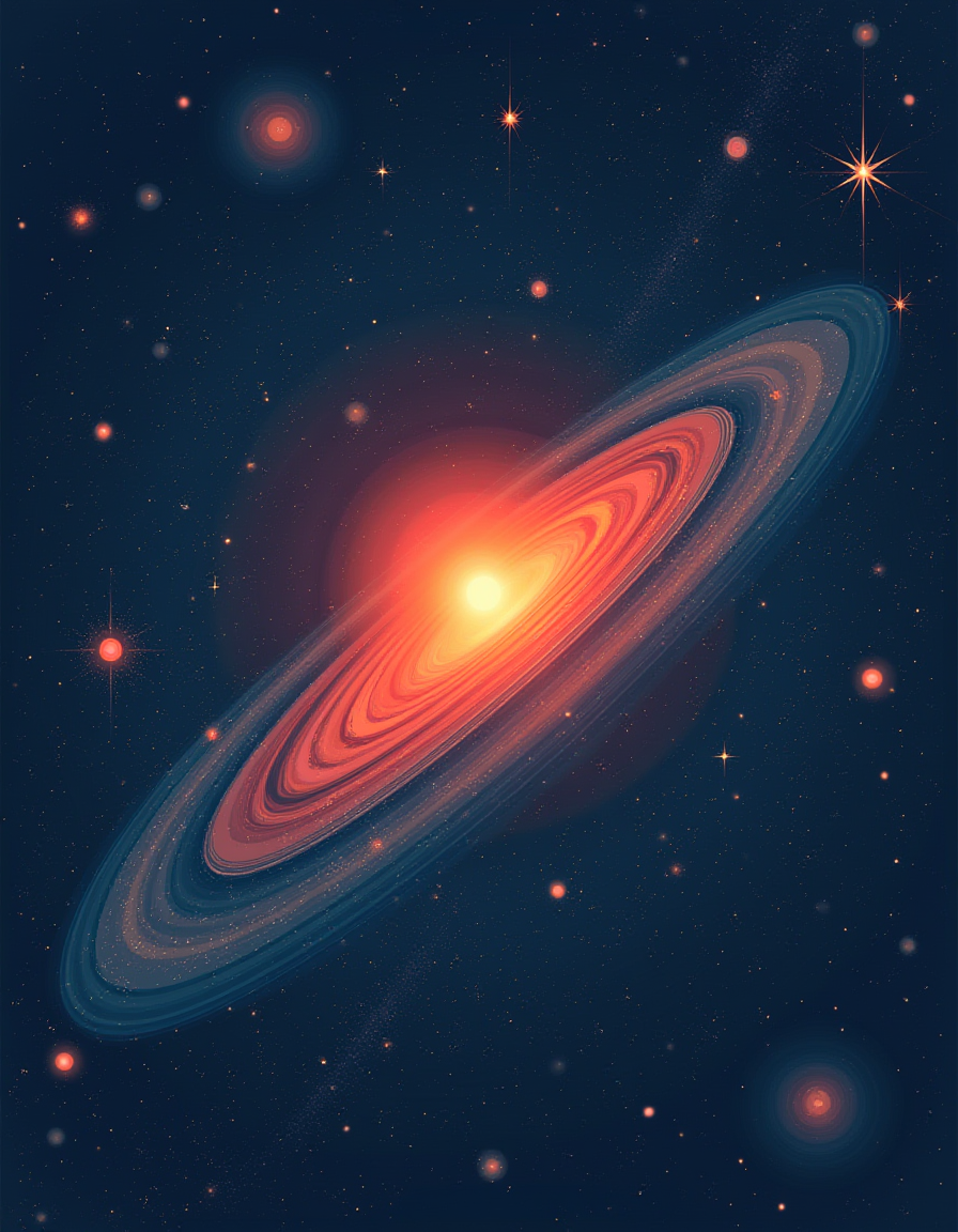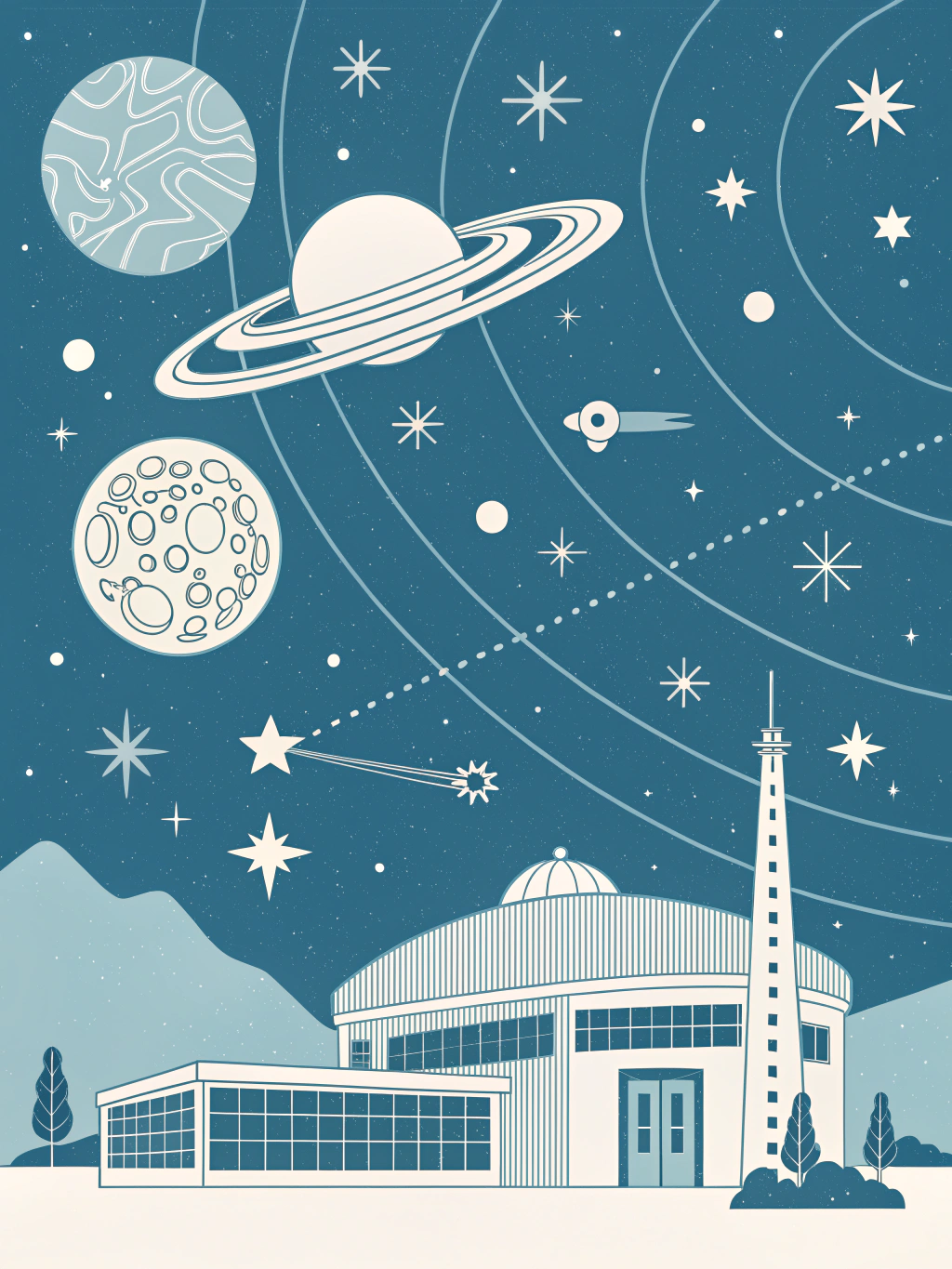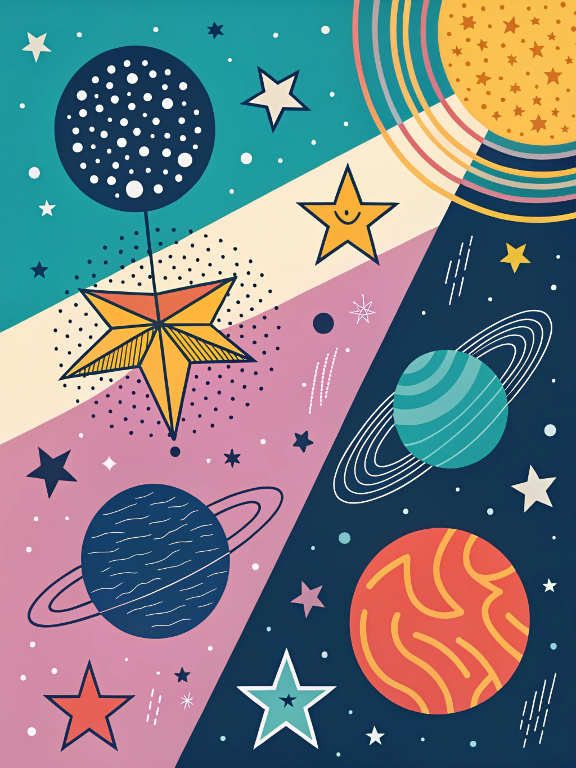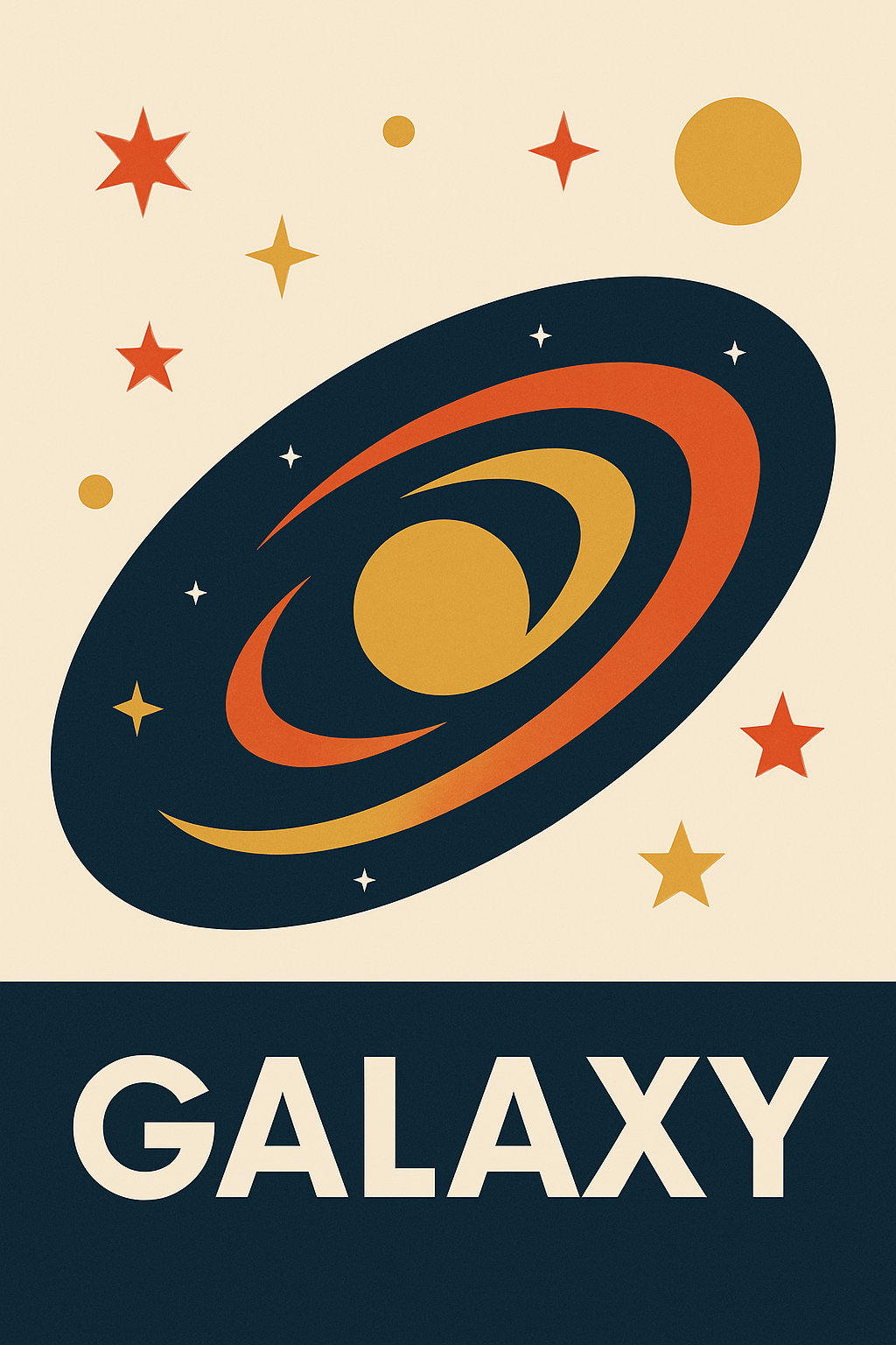 | a flat vector illustration of the galaxy in the 1950s Swiss Style | |||