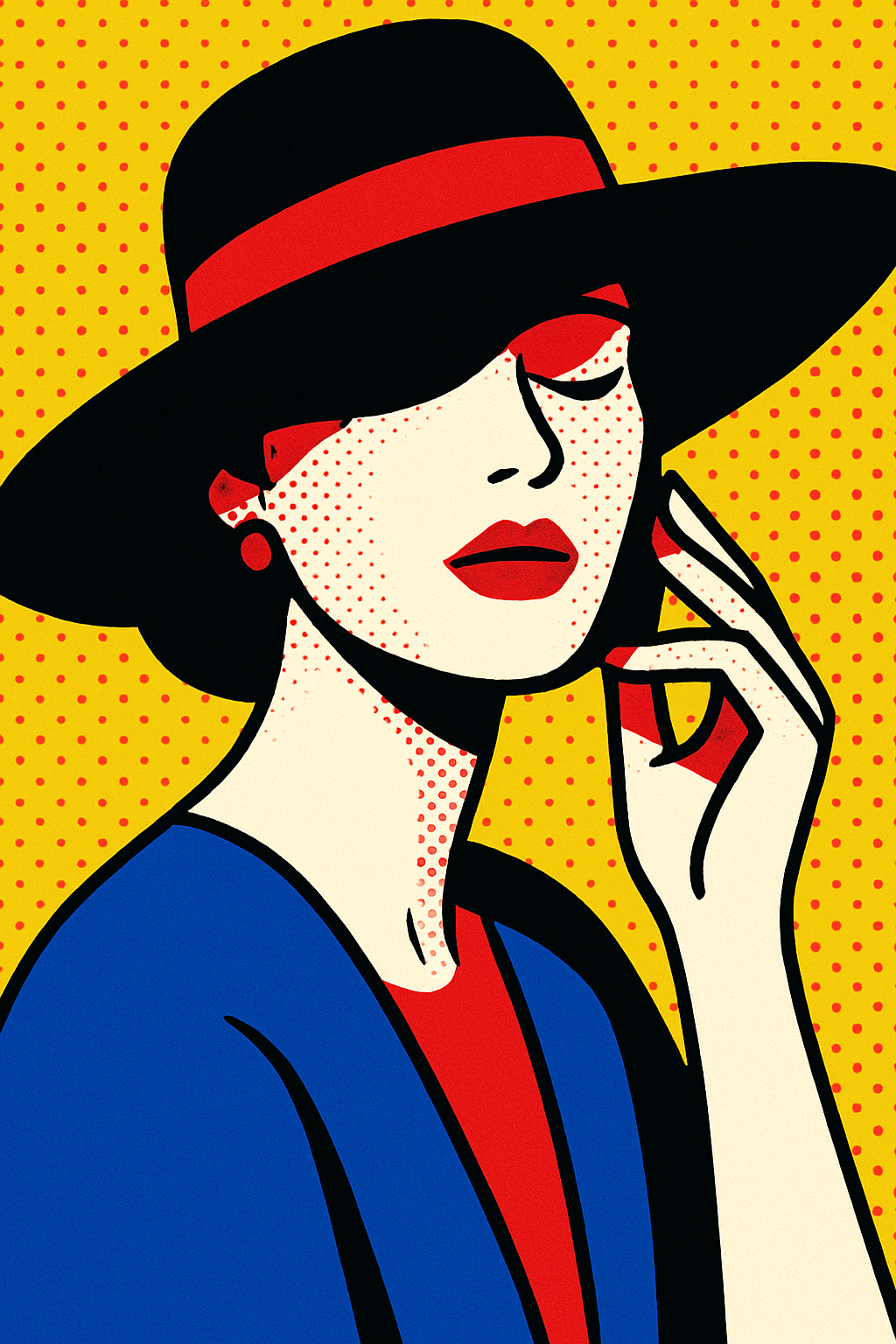 | a pop art flat vector illustration of a fashionable woman wearing a hat | |||