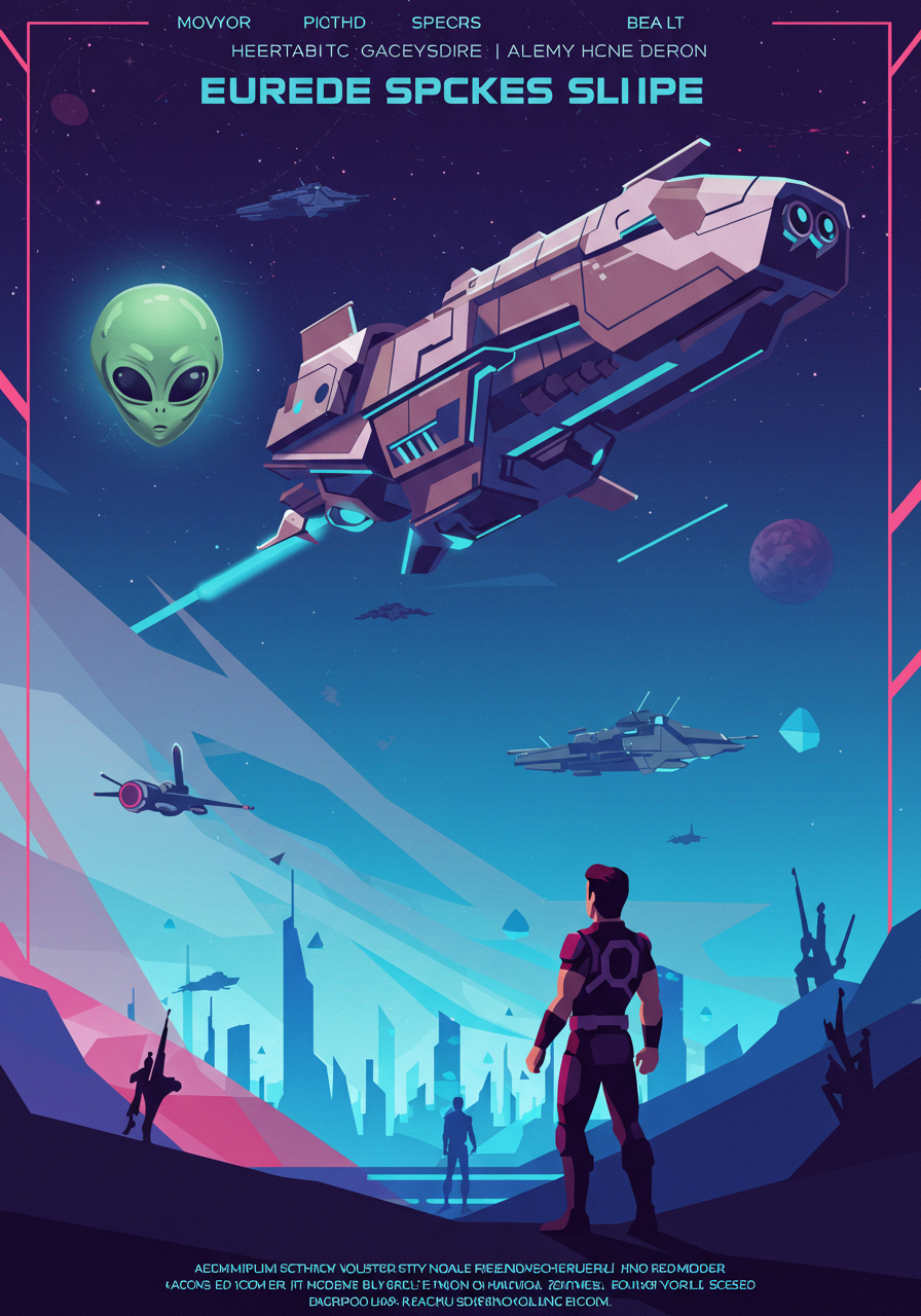 | a flat vector illustrative sci-fi movie poster, in the style of web design | |||