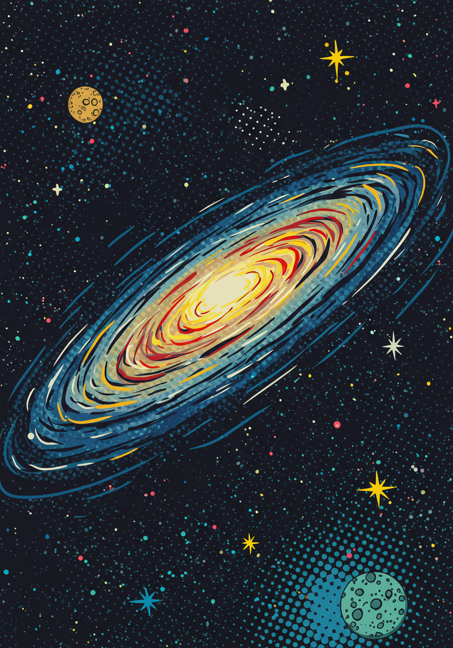 | a Chromatic flat vector illustration of the galaxy | |||