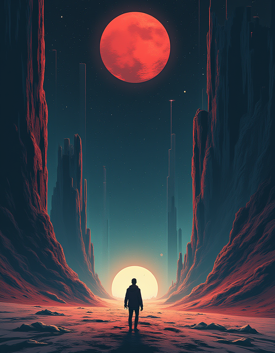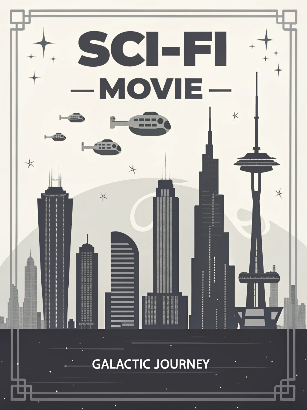 | a monochromatic flat vector illustrative sci-fi movie poster | |||