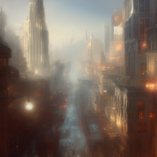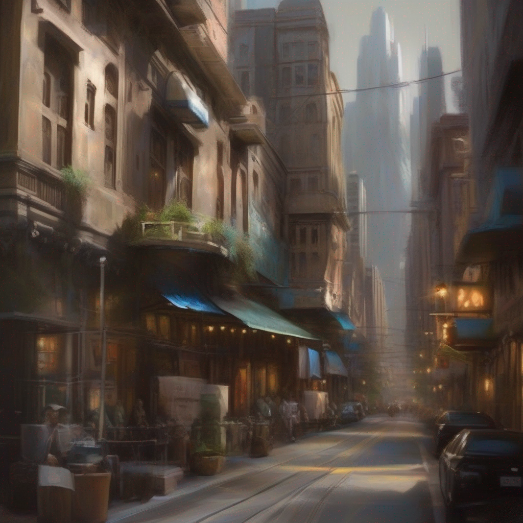 아래는 "Painting of a beautiful city by Brad Rigney"로 생성한 이미지입니다.