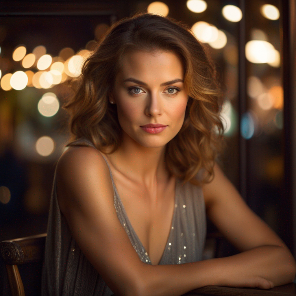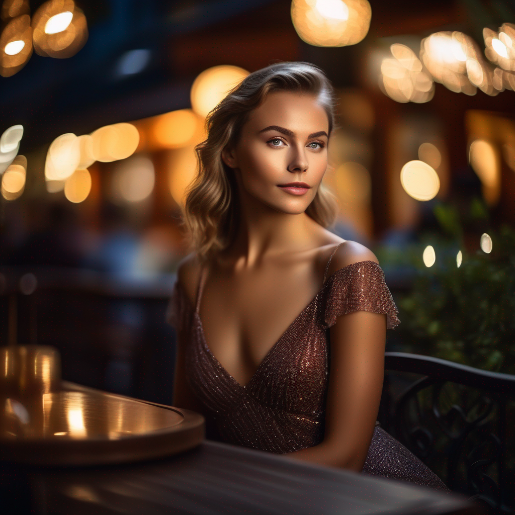 프롬프트: photo of young Caucasian woman, highlight hair, sitting outside restaurant, wearing dress, rim lighting, studio lighting, looking at the camera, dslr, ultra quality, sharp focus, tack sharp, dof, film grain, Fujifilm XT3, crystal clear, 8K UHD, highly detailed glossy eyes, high detailed skin, skin pores