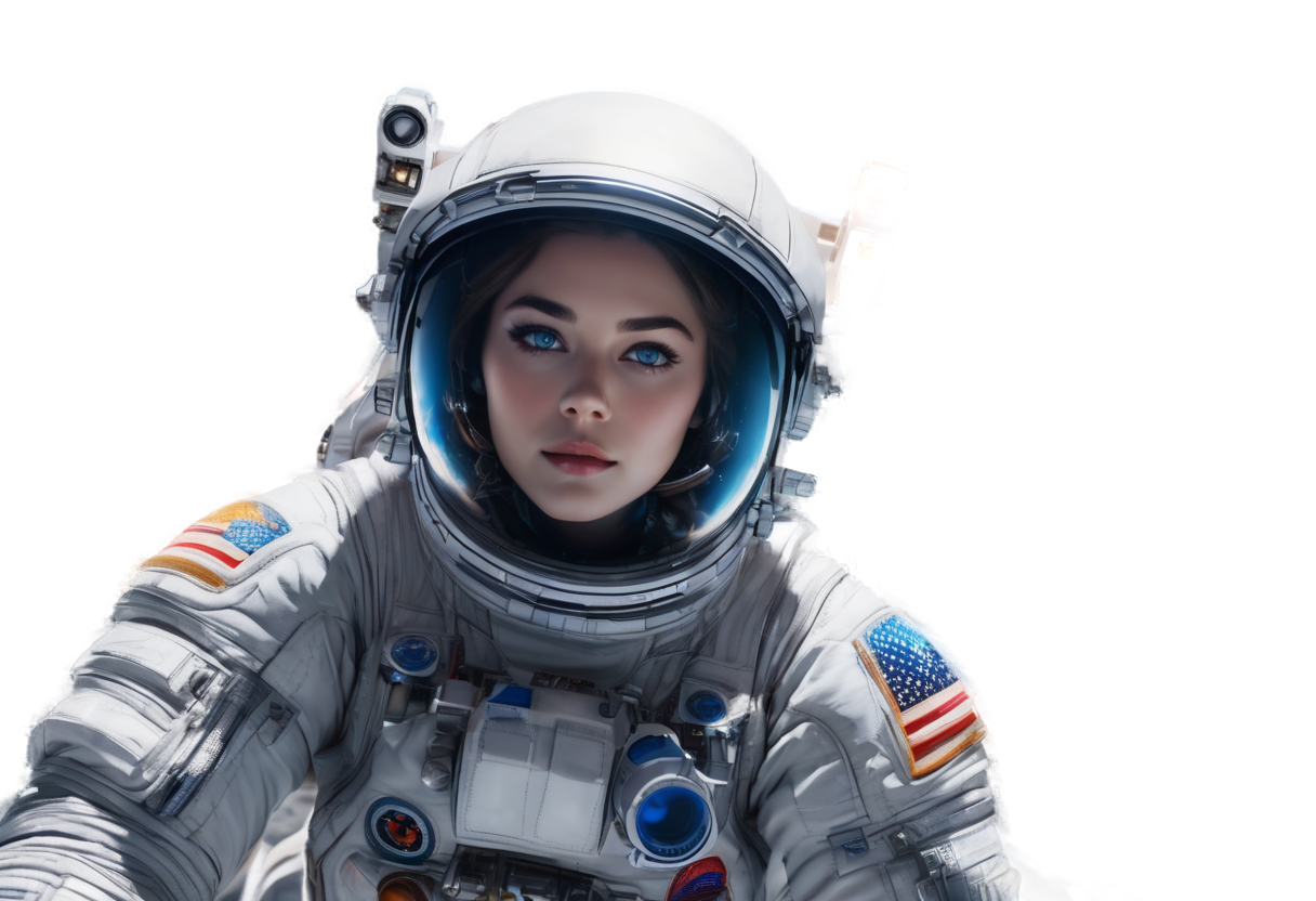 프롬프트: a woman in space suit , close-up, highly detailed face, deep blue eyes, high in space, background moon, stars and earth, 8k